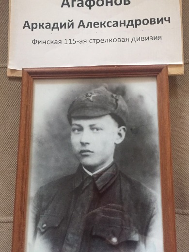 Красноармеец Агафонов Аркадий Александрович 10.11.1922 г.р. Уроженец: Удмуртская АССР, Дебесский р-н, с. Наговицино. Призван в октябре 1940 года. Числится в списках 3 стрелковой роты, 576 стрелкового полка, 115 стрелковой дивизии. Отец: Агафонов Александр Михайлович. Письменная связь прекратилась 19.07.1941г. с адреса п/п 456, 576 СП, 3 с. р., Карело-Финская ССР. По спискам Дебесского РВК за 1946 год считается пропавшим без вести с 09.1941г. Погиб в августе 1941г.