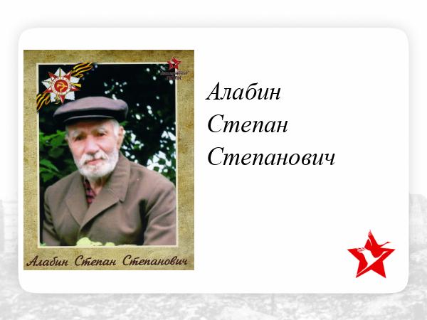 Отец - Алабин Степан Федорович, мать - Алабина Аграфена Тимофеевна, умерла при родах, когда сыну было около двух лет. Отец женился на другой женщине и прожил с ней всю оставшуюся жизнь. У мачехи были свои дети. Общих детей у них не было. У отца была мельница на реке Алатырь. В селе Саитовка семья имела полдома: первый этаж дома был выложен из кирпича, второй - деревянный.