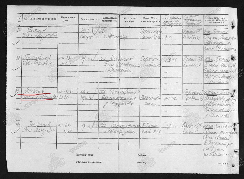 В 1941 году был призван Вязниковской РВК. Воевал в составе 222 стрелкового полка 49 стрелковой дивизии. Был пулеметчиком.В январе 1942 года прислал последнее письмо. С февраля 1942 года числится пропавшим без вести.