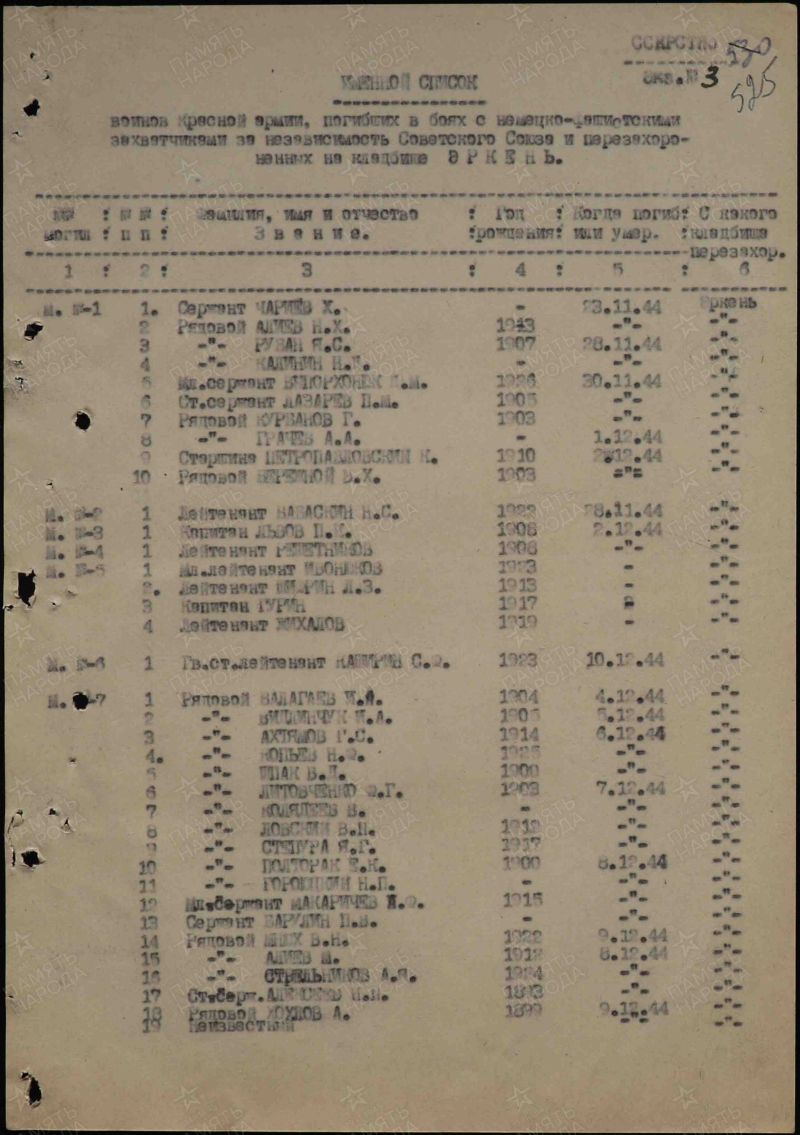 В тяжёлых боях за освобождение Венгрии был смертельно ранен, лежал в ЭГ-5018, но помочь ему не смогли…