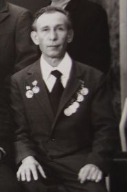 Имеет награды: две медали за отвагу, медаль "За Победу над Германией" (к сожалению, утерена), орден Отечественной войны 2-ой степени и юбилейные медали.