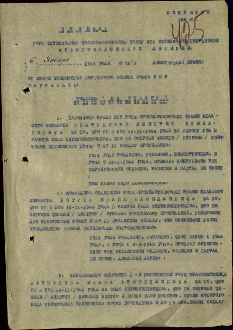 Своего отца я знала к сожалению до 10 лет. Знала,что он воевал, со слов матери был ветераном войны. И только недавно узнала где он воевал и за что получил награды на сайте "Подвиг народа" Как оказалось он получил Медаль "За отвагу" и Орден Отечественной войны 1 степени. Призывался он в 1944 году откуда был родом, с Украины. Свою медаль получил за участие в боях за Венгрию.