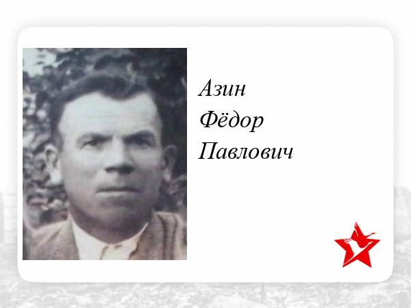 Мой дед ушел на фронт в 1941 году.Героически сражался в 948 арт. полку 385 стрелковой дивизии.В 1943 г. награжден медалью "За боевые заслуги" в боях под Смоленском. В 1944 г. был тяжело ранен осколком в голову . Скончался от ран в госпитале. Похоронен в братской могиле в Белоруссии