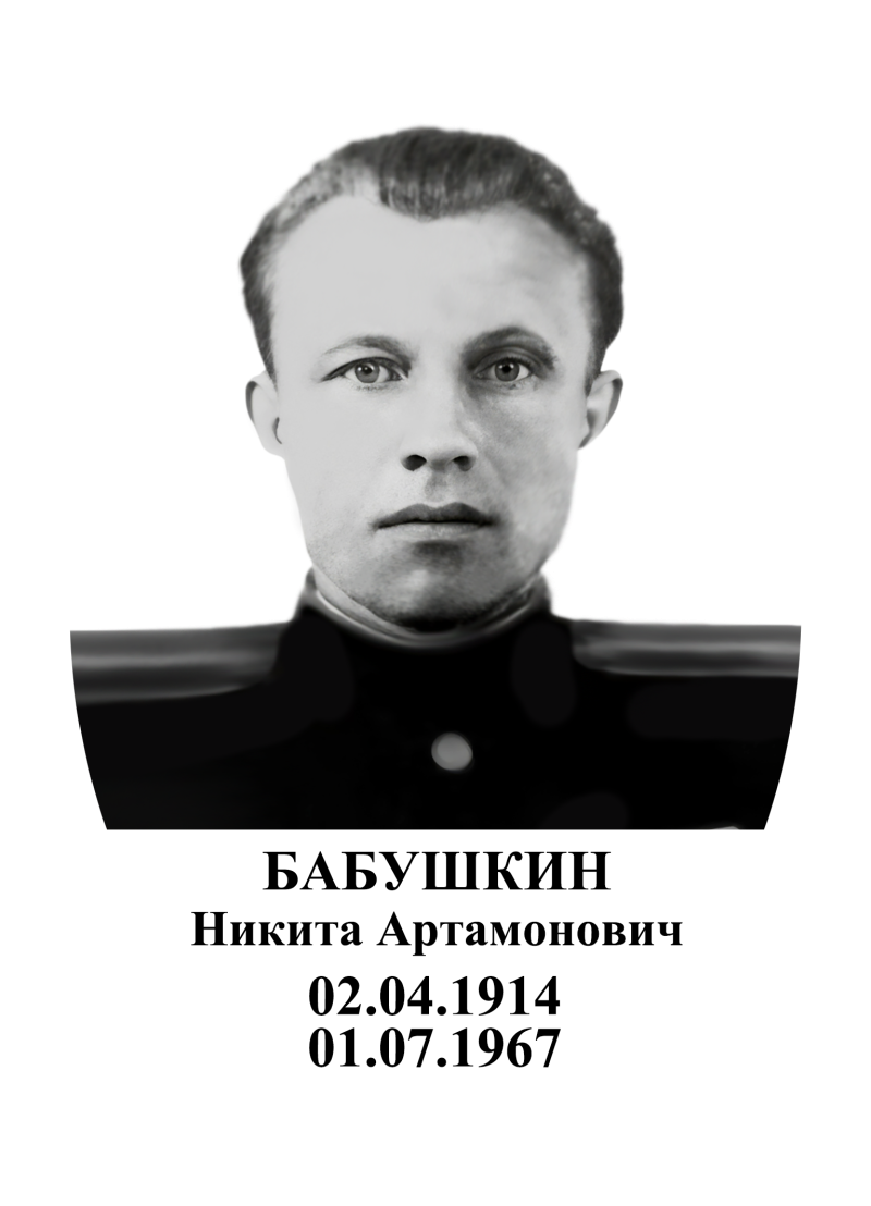После войны, Бабушкин Никита Артамонович, продолжил службу в секретном строящемся городе Свердловск-44. Умер 1 июля 1967 г, в возрасте 53 лет. В 2024 г. краеведами обнаружено захоронение на “старом” кладбище в п.Верх-Нейвинский. Памятник оригинальной конструкции, но от времени проржавел, требуется замена и поиск в архивах города Новоуральск информации , где работал и жил, были ли родственники? В книгу Памяти 2025 г по Новоуральску не занесен.