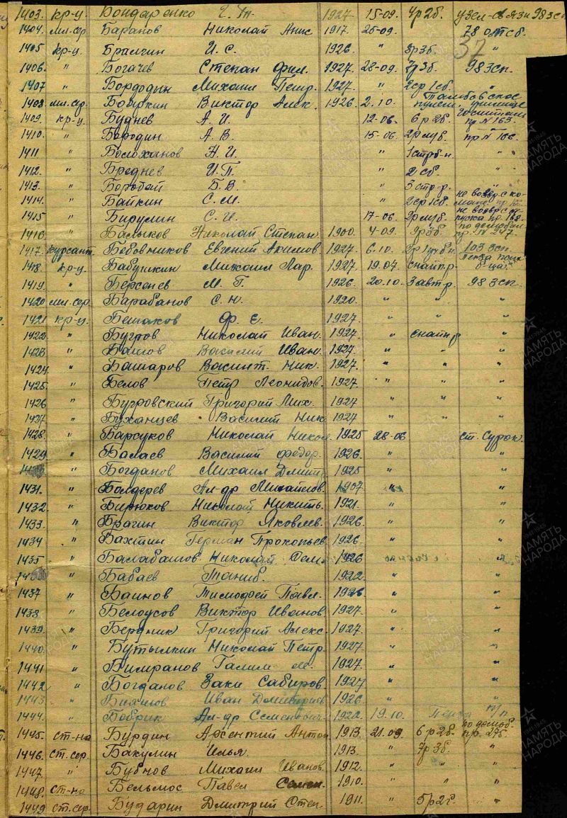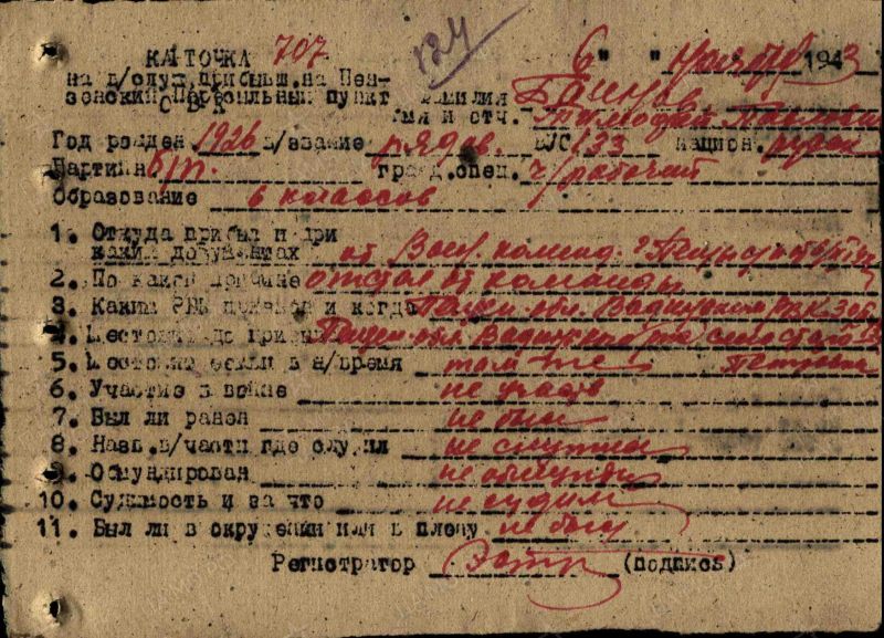 Дата и место призыва: __.__.1943 Вадинский РВК, Пензенская обл., Вадинский р-н