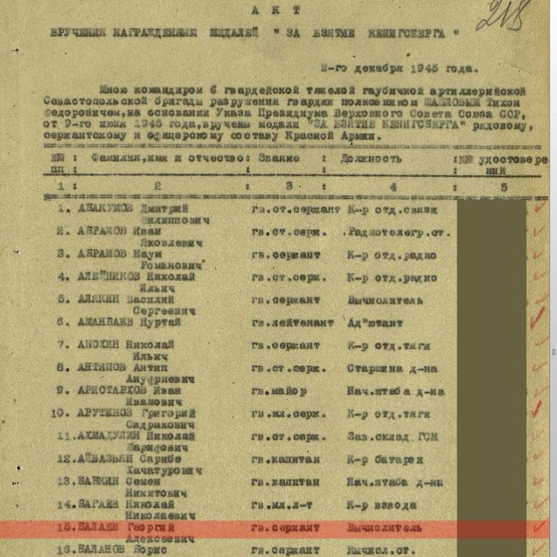 Освобождал Севастополь, участвовал во взятии Кенигсберга. Был ранен. Войну окончил в звании сержанта. После войны преподавал в Чирчикском Высшем Танковом Командном Училище им. маршала Рыбалко. Награжден медалью "За отвагу", "За взятие Кенигсберга", орденом "Отечественной войны I степени", другими медалями. В отставку вышел в звании полковника. Воспитал 3-х сыновей, которые пошли по стопам отца и тоже стали офицерами. Двое из них - воины-афганцы. Всю свою жизнь дед оставался бесконечно добрым, светлым и по-настоящему любящим человеком. Скончался в 1992 году, похоронен на Хованском кладбище г. Москвы