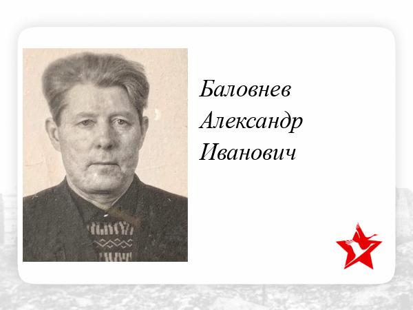 Баловнев Александр Иванович ушел на фронт в июне 1941 года.