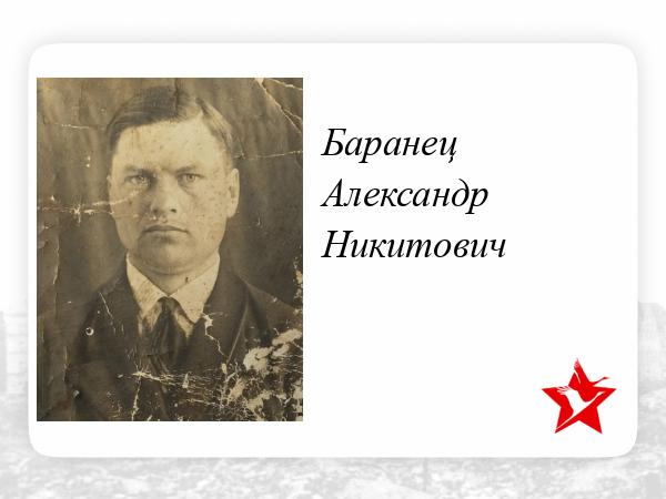 Про Александра Никитовича известно очень мало. Известно, что он был серьезно ранен, что последнее письмо было получено от него в 1942 году, после не было писем и сведений, что с ним и где он. Только недавно стало известно, что он похоронен в Калачевском р-н, х. Рюмино-Красноярский, ул. Центральная, 28а, в братской могиле.