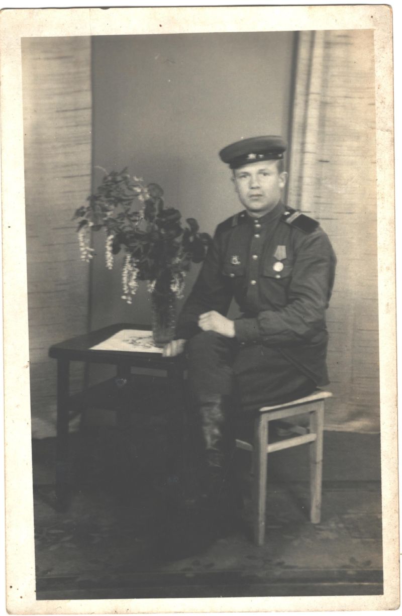 Мой дедушка прошел всю войну, дошел до Берлина. Ушел на фронт в возрасте 17 лет.Служил в 117 стрелковом полку, 23 стрелковой дивизии. По окончании войны еще служил 2 года в армии, домой, в с.Каменку, вернулся в 1947 году. Женился, родилось у него 2 детей, потом 2 внуков. Уже есть правнуки, но дедушки нет в живых,
