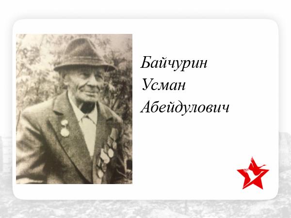 Рядовой солдат-понтонщик Байчурин Усман Абейдулович дошел с боями до Польши, теряя товарищей в кровавых водах Волги и Днепра. Был контужен, ранен, чуть не остался без ноги. Его направили лечиться в Раменский госпиталь. Встал на ноги- и приказ: теперь на Японский фронт. В пути на Дальний Восток объявили долгожданную Победу.