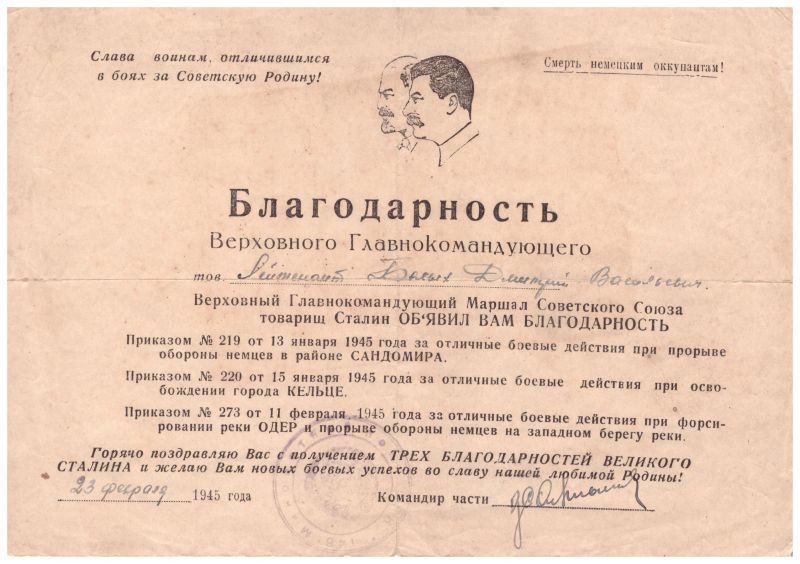 Мой дед Дмитрий Васильевич Белых начал войну бронебойщиком, стал офицером-комиссаром противотанковой батареи, был начальником разведки дивизиона, полка и бригады. Старший лейтенант Дмитрий Белых вернулся с фронта с пятью боевыми орденами - три ордена Красной Звезды, орден Боевого Красного Знамени, орден Отечественной Войны - и многими медалями.