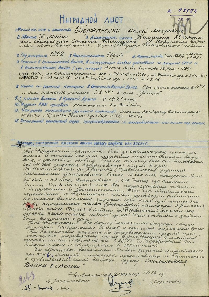 Бержанский Моисей Меерович, год. рождения 1902 - (данные уточняются)
