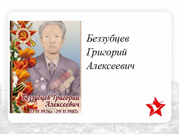 10.05.1945 - Орден Красной Звезды - во время наступательных боев с 16 по 27 апреля 1945 года западнее города Лебус на левом берегу Одер (Германия) точно и своевременно выполнил приказания начальников по разведыванию переднего края противника. Во время разведки лично уничтожил одну пулеметную точку противника, убил двух немцев и взял в плен 3-х немцев - за это и предсьавлен к данной награде.