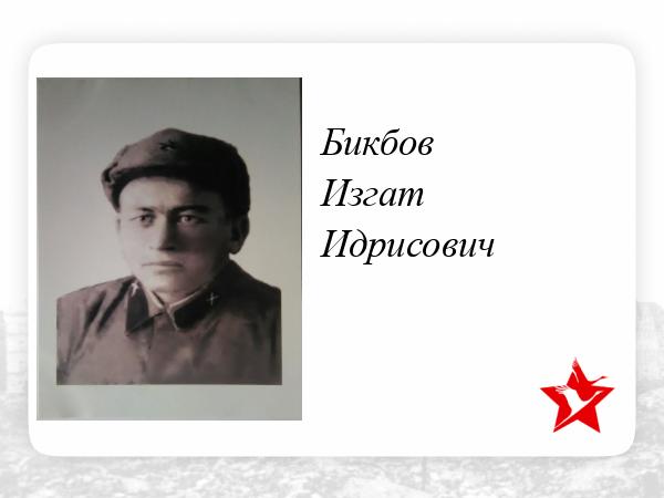 Бикбов Асхат Идрисович родился в семье муллы в 1919 году в деревне Урдалы Шугуровского района ТАССР. Семья в 30-е годы была сослана за Урал после ареста муллы в Бугульминскую тюрьму, откуда он уже не вернулся.