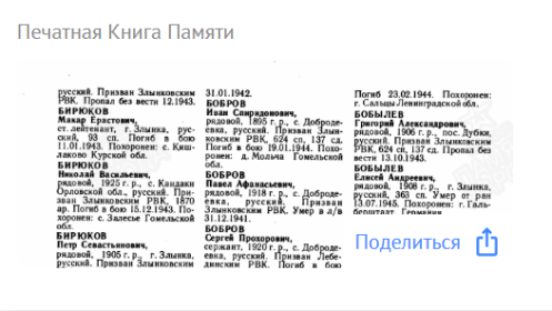 Бирюков Петр СевостьяновичПоименный список захоронения
