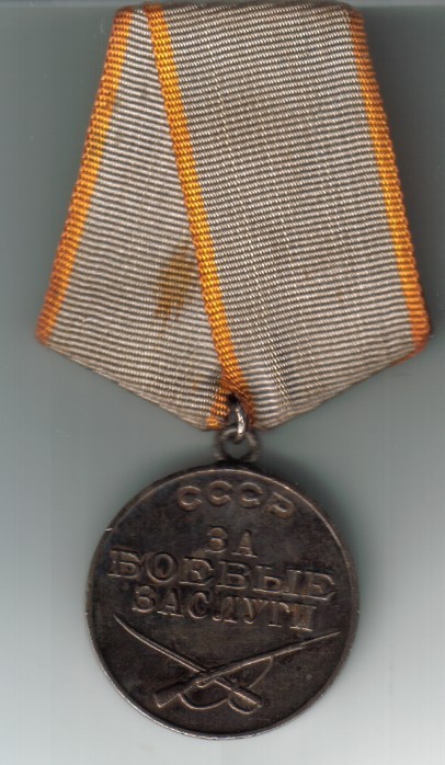 В 1944 году мы двинулись на г.Льгов, там долго стояли, 3 батарею 1 дивизиона перевели в 254 зенитно-артелирийский полк ПВО (у 183 полка были большие потери и его расформировали). Весь расчет 183 полка получил благодарность от Константина Константиновича Рокоссовского. Командир батареи Иван Иванович Егоров представил меня к награде. В г.Льгове мне вручили медаль «За боевые заслуги». Потом мы двинулись на Украину, занимали пустые блиндажи. Бендеровцы повырезали наших солдат и мы располагались в их землянках. Мы стояли под г.Киевом – станция Дарница. Кругом от выжженного села стояли одни печные трубы.