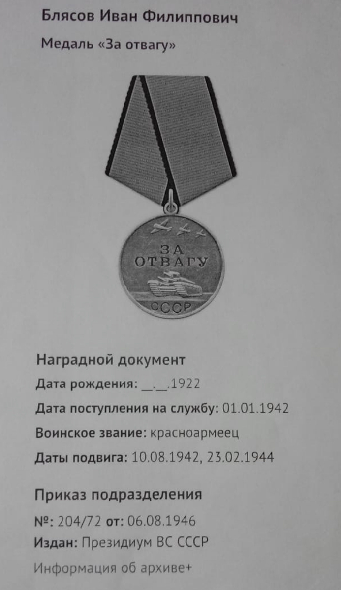 23.02.1944 г был тяжело ранен (Волховский фронт) в последствии комиссован.