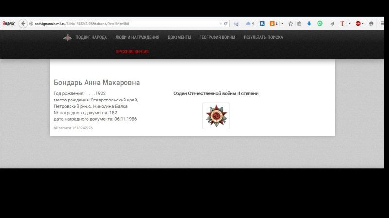 Родилась 27.12.1922г. в с.Николина Балка Петровского района Ставропольского края. Участница ВОВ, в действующей армии служила в батальоне аэродромного обслуживания в звании сержанта радистки-морзистки на Украинском и Белорусском фронтах, дошла до Берлина. За участие в ВОВ награждена медалями «За оборону Кавказа», «За Победу над Германией в Великой Отечественной войне 1941-1945 гг.», «За доблестный труд в Великой Отечественной войне 1941-1945 гг.», а также «Орденом Отечественной войны II степени» (наградной документ № 182 от 06.11.1986г.). С конца 40гг. XX века жила в г.Ставрополе. Заочно закончила Московский государственный историко-архивный институт (МГИАИ). Работала архивистом, документоведом в различных учреждениях г.Ставрополя, в том числе в Государственном архиве Ставропольского края. Умерла в 2002г., похоронена на городском кладбище "12-й км", могила №0859.