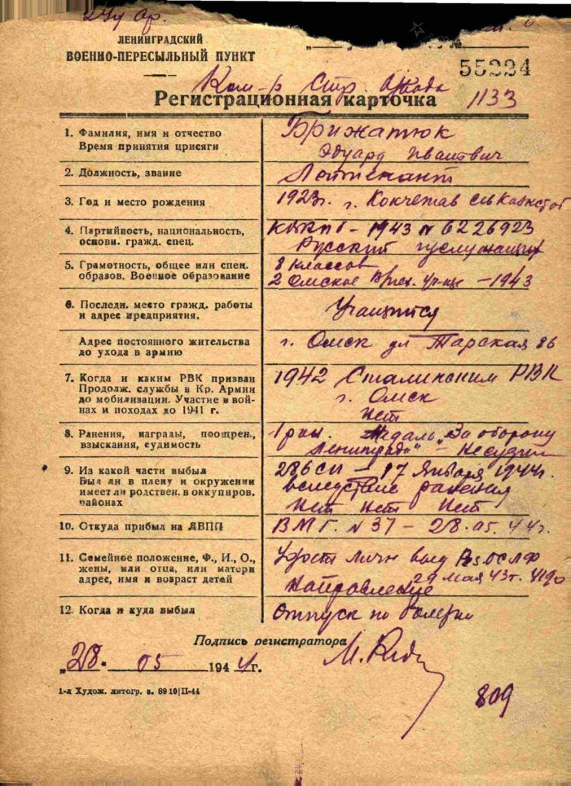 286 стрелковый полк 90 стрелковой дивизии; Ленинградский военно-пересыльный пункт, Ленинградская обл., г. Ленинград; 37 Ижорский военно-морской госпиталь; отпуск; 39 Омская запасная стрелкова