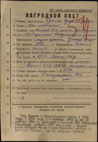 Командир батареи 45-миллиметровых пушек 1337 стрелкового полка 318 стрелковой дивизии. Ранен 07.09.41 и 24.08.42.