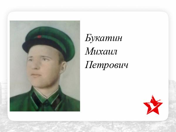 Осталась жена Букатина ( Перелыгина) Акулина Петровна 01.07.1918-03.07.2003, двое детей Шевченко Валентина Михайловна 02.01.1942-16.10.2023, Букатин Анатолий Михайлович 23.02.1939-05.02.2025, внуки Ирина Николаевна Сазонова 27.05.1966 гр, Шевченко Евгений Николаевич 20.12.1973-17.09.2024, Прохорова Елена Анатольевна 26.01.1966 гр, правнуки Сазонов Александр Сергеевич 16.08.1988 гр, Крылова Мария Вадимовна 23.07.1986 гр, Довгаль Александра Вадимовна 10.10.1988 гр, Голубев Максим Александрович 05.04.2002 гр, Шевченко Олег Евгеньевич 06.04.1995 гр, праправнуки Моисеенко Виктория Алексеевна 27.09.2012 гр, Крылов Михаил Леонидович 23.04.2020 гр , Довгаль Валерия Павловна 14.12.2015 гр , Довгаль Тимофей Павлович 25.05.2018 гр., Сазонов Тимофей Александрович 23.05.2013 гр, Сазонова Анна Александровна 03.12.2014 гр.