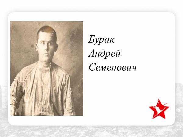 Мой прадед Бурак Андрей Семенович, дедушка моей мамы проживал с семьей в Ростовской области , в с. Курмоярском. С самого начала войны, он вступил в ряды Красной Армии.