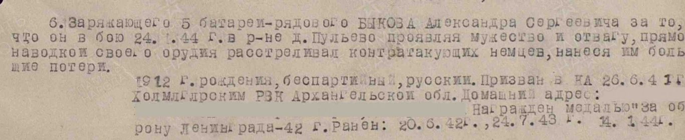 Мой прадед — Быков Александр Сергеевич, родился в 1912 году в селе Верхние Матигоры Холмогорского района Архангельской области. Работал в колхозе.
