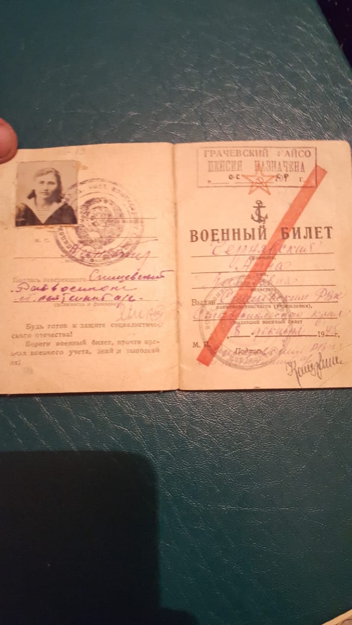 Спасая секретную военную документацию, попала под бомбежку вместе с составом на крейсере, спасалась вместе с другими, архивом на шлюпках, одна из немногих выживших.... Архив был спасён полностью и доставлен по назначению...