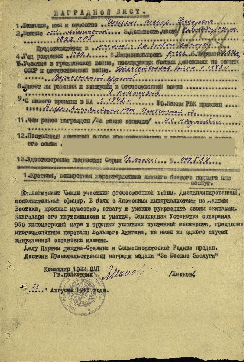 После выписки из госпиталя (после ранения) его направили в стрелковую дивизию и чуть было не отправили далее на фронт стрелком, уже выдали винтовку. Но его командир сам ездил по разным частям и искал своих танкистов, выписанных из госпиталей и отправленных в другие части, чтобы вернуть их назад в свою часть. Нашел и Федора Федоровича в стрелковой дивизии, удивился, как он туда попал, почему его направили в стрелковую дивизию после госпиталя, ведь он же танкист. Вернул его назад в свою танковую дивизию, в которой в то время очень мало осталось танкистов. После этого вместе с этой частью (5 Гв ТА) продолжил боевой путь на запад. Дошел до Минска, где участвовал после освобождения города в танковом параде. После Минска был направлен на курсы подготовки коммандиров СУ100 и затем был отправлен на Дальний Восток на войну с Японией, командиром СУ 100 в составе 1022 сап 231 сабр. В 1945 году он участвовал в переходе через Большой и Малый Хинган, в Манчжурской операции и в разгроме Квантунской армии. При переходе через Большой Хинган получил медаль «За боевые заслуги». Далее до 1947 года служил в Китае.