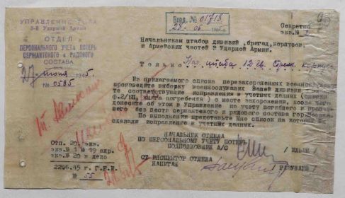 Чуруксаев Николай Фёдорович, 1923 г. р. Место рождения Красноярский край, Енисейский район, с. Плотбище. Призван Енисейским РВК в 1941 году. Гв. сержант. Командир отделения автоматчиков. В/ч 1227 сп 369 сд 3 Уд. А., 23 гв. сд 12 гв. ск 3 Уд. А. Ранен в марте 1943 года. ЭГ 3438,3461 (по справочнику Солдат. ру дислокация Калининская область). Имел три боевых ранения. Награжден орденом Славы 3 степени (5.08.1944). В 1947 году признан Пропавшим без вести в мае 1945 года Енисейским РВК. Убит в бою 22.04.1945 года. Первичное место захоронения Германия, зем. Бранденбург, на границе районов Бух и Каров (северо-восточный район Берлина). Перезахоронен Германия, зем. Бранденбург, район Бернау, н/п Блюмберг, около Берлинской автострады, братское кладбище. В документах допущены ошибки: 1). 1921 г. р., 2). звание-красноармеец., 3). фамилия Чуркусаев ( так и похоронен). Мать Чуруксаева Т.М.