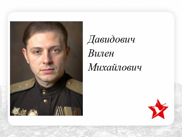 Давидович Вилен Михайлович (по рождению Ефим Аронович) родился 1 декабря 1924 года на Украине в г. Каменец-Подольский. Еврей.