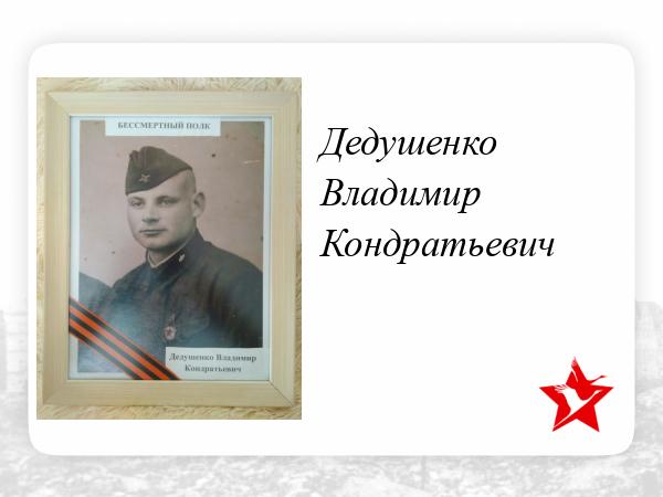 Мой дед танкист! Знаю о нем со слов матери, надеюсь что в скором в архивах найду больше информации! Также мой дед во время одного из боев потерял ногу, был механиком водителем танка, однажды горел в танке! Родился в Ленинграде, но все родственники говорят что на Украине оттуда же призывался в 1939 году, после войны оказался в Ставрополе там собственно и продолжил жизнь!