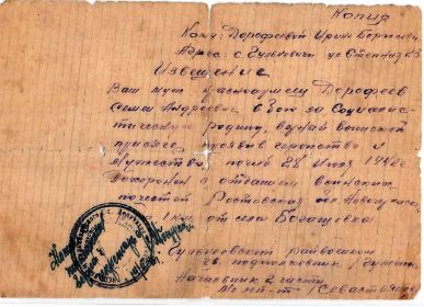 похоронен с отданием воинских почестей Ростовская область Новочеркаского района, 1 км от села Богашевка.