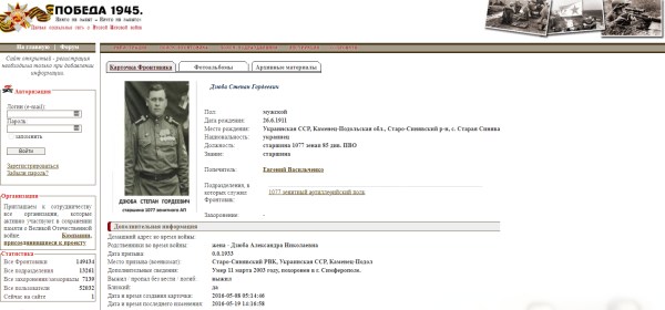 ИЗ САЙТА " ПОРТАЛ О ФРОНТОВИКАХ