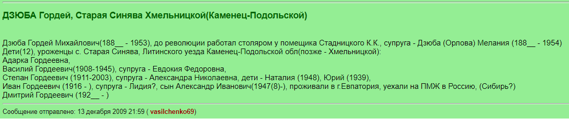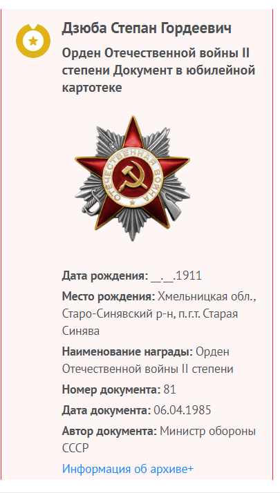 Место рождения: Украинская ССР, Каменец-Подольская обл., Старо-Синявский р-н, с. Старая Синява