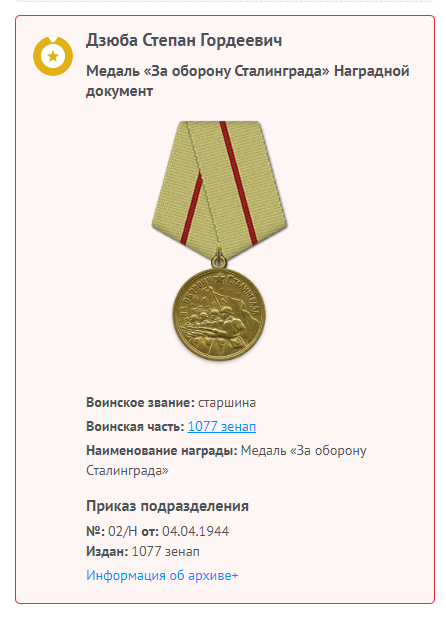 Родственники во время войны: жена - Дзюба Александра Николаевна