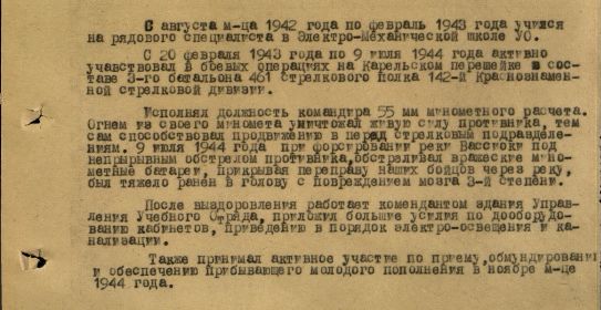 _Родился Егоров Павел Иванович 1.04.1924 года. С августа 1942 г. по февраль 1943 г. учился на рядового специалиста в Электро-механической школе Учебного отряда.