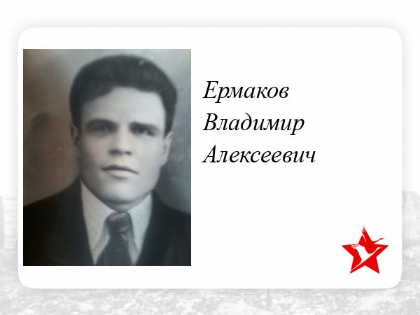 Ермаков Владимир Алексеевич (1912-1944). Жил в д.Торопово Ермишинского р-на Рязанской области, работал на пароходе в г.Касимов. Ушел на фронт в 1941 году (призывался из пос. Ермишь Рязанской области), дома остались жена и двое детей (дочке тогда едва исполнился 1 годик). Служил в 119 Гв. сд. В 1944 году 1 февраля погиб! (прислали похоронку, захоронен в Калининской области). По данным сайта память народа.ру - Калининская область, Новосокольнический р-он, д.Скрябино. Сейчас у него огромная семья - четыре внучки, 5 правнуков и 6 праправнуков!!! ПОМНИМ И ЧТИМ ПАМЯТЬ!!!