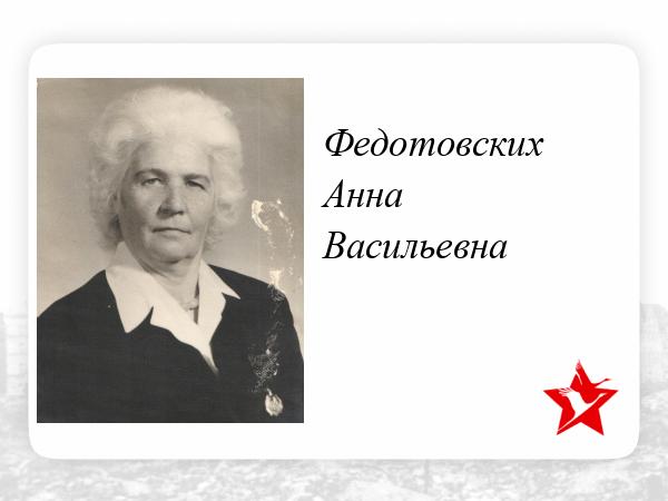 Анна Васильевна с началом Великой Отечественной войны по путёвке комсомола, была призвана на фронт со Свердловской фабрики «Уралобувь». В 1942 году её направили в город Ленинград, в состав Краснознамённого Балтийского флота. Она служила сигнальщиком в охране военных объектов и прослужила в блокадном Ленинграде до 1944 года.