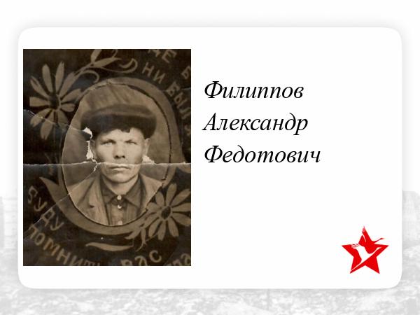 Имена Александра Федотовича Филиппова и Прасковьи Лазаревны – это символ верности и преданности, символ вечной любви, которая не знает границ времени и расстояния. Он – солдат, не вернувшийся с войны, она – жена, ждавшая его всю жизнь. Их история – частица великой истории нашей страны, о которой мы должны помнить и передавать из поколения в поколение. А дети, Георгий и Иннокентий, пронесли память об отце через всю свою жизнь, рассказывая своим детям и внукам о герое, отдавшем себя за Родину.