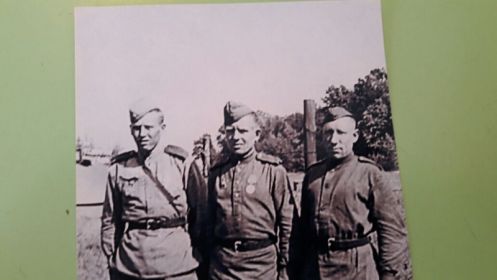 В наступательных боях с 25-31 марта 1944 года в районе д. "Смолины" наш прадедушка 6 раз возил имущество связи и другой необходимый материал на НП командира бригады, всегда умело выводил машину из вражеского артиллерийского огня.