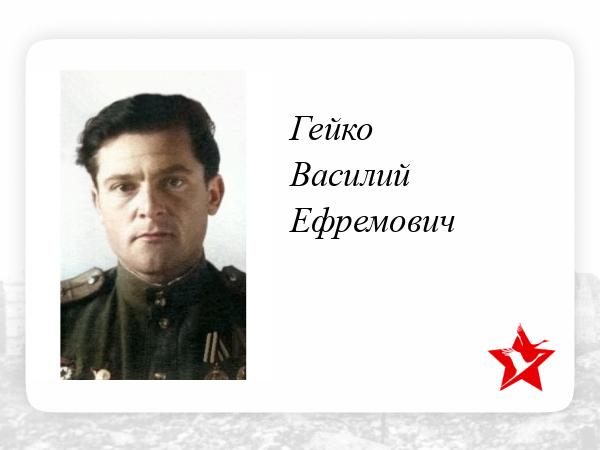 Приказом от 11 мая 1945г. гвардии младший лейтенант Гейко был награжден орденом Красной Звезды.
