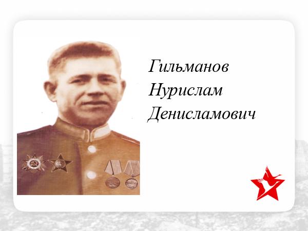 Мой прадедушка родился 13 августа 1916 года в деревне Армет-Рахимова Ишимбайского района. Служил с 1938 года по 1946 год. В 1942-1943 годах участвовал в Сталинградской битве и дошёл до Берлина. За боевые заслуги был награждён орденом «Красной звезды», а также медалями «За взятие Берлина» и «За победу над Германией».