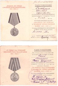 По окончанию войны награды нашли своего героя, в 1950 году награждён медалью "За победу над Германией в Великой Отечественной Войне " .В1966 году- юбилейная медаль "Двадцать лет Победы". В 1970году - юбилейная медаль "50 лет вооружённых сил СССР". В 1976 году - юбилейная медаль "60 лет вооружённых сил СССР". В 1976 году - юбилейная медаль "Тридцать лет Победы".
