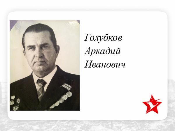 Дядя Аркаша 1926 года рождения. В 1944 году, 8 марта ему исполнилось 18 лет, и он ушёл на фронт. В это время уже немцев гнали по Европе. Поэтому он мало успел повоевать. Но, он дошёл до Берлина и расписался на Рейхстаге. После войны дядя учился в военной академии в Ленинграде и был офицером. Жили с семьёй, куда отправляли. Последнее время жил в Астрахани. Дядя участвовал в парадах.