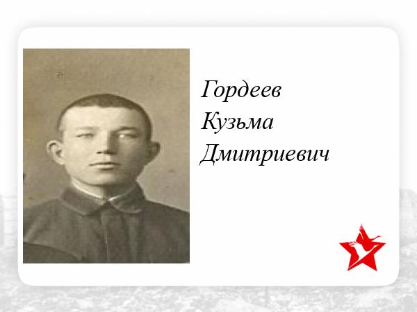 Мой дед, Гордеев Кузьма Дмитриевич, 1914 года рождения. Уроженец с. Бузаево Б-Березниковского р-на МАССР. Танкист, погиб на Курской дуге 9 июля 1943 года.