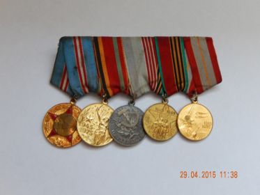 Григорьев Михаил Тимофеевич. Мой дедушка родился 21 ноября 1923 года в деревне Ивановка Медвенского района, Курской области. 6 апреля 1942 года, в 19 лет, он ушёл добровольцем на войну из города Мурманска. 23 июня 1942 года дедушка поступил на службу в 290 стрелковый полк - автоматчиком. А с 5 февраля 1944 года он был переведён в состав 721 стрелкового полка в должности – разведчик-автоматчик и прослужил им до конца войны. Благодаря сведениям, которые он добывал в разведке, многие сражения были выиграны советскими войсками. О боевом пути дедушки говорят его награды. За мужественную и героическую службу он был награждён большим количеством медалей и орденов. Но за годы войны многие наградные документы были утеряны и награды не дошли до своего Героя. Пусть не все, но всё же, дедушка некоторые медали и ордена сохранил до победы: «Орден славы третьей степени», «Медаль за отвагу», «Медаль за взятие Кёнигсберга» (современный город Калининград), а так же у него большое количество юбилейных наград. В эти страшные военные годы он был трижды ранен: осколочное ранение в бок, осколочное ранение в ногу, тяжелая контузия. Последнее ранение, чуть не стало для него посмертным. Зимой 1945 года в бою в окопе около дедушки взорвалась вражеская граната. Он был контужен, потерял сознание и его полностью присыпало землёй. После боя похоронные бригады собирали убитых солдат с поля боя. И один служивый случайно обратил внимание на свежий холм земли среди белого снега. Когда холм раскопали, там лежал живой дедушка. Мой дедушка никогда не был трусом. В госпитале наспех залечивал раны и снова возвращался на передовую. Он прошёл всю войну. Победу дедушка встретил в городе Кёнигсберге. С воины он вернулся героем для своих близких и родных. Дедушка никогда не любил рассказывать о войне. Потому что эти воспоминания причиняли ему глубокую душевную боль. Ведь в эти страшные годы он видел весь ужас, весь кошмар тех событий. В боях дедушка потерял много друзей и товарищей. А самой страшной потерей для него стал его отец: Григорьев Тимофей Терентьевич. Он без вести пропал 24 марта 1944 года на территории Украинской ССР. Боевые раны дедушки и осколки в ноге спустя более 55 лет дали о себе знать. Он умер от заражения крови 3 января 2001 года в возрасте 78 лет. Я люблю и горжусь дедушкой! Он навсегда останется в памяти многих поколений, как настоящий ГЕРОЙ, который более 70 лет назад подарил нам МИР!