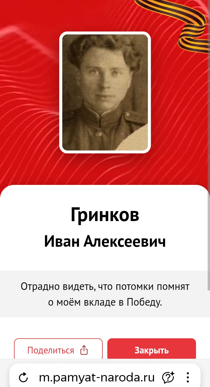Гриньков Иван АлексеевичУчетно-послужная картотека