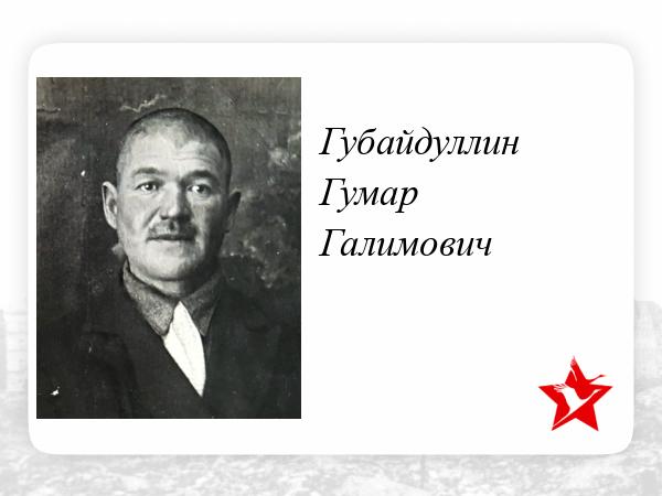 Губайдуллин Гумар Галимович родился в 1904 году в деревне Акман Кургазинской волости Оренбургской губернии (ныне деревня Ибраево Кугарчинского района Республики Башкортостан).