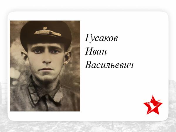 Гусаков Иван Васильевич. Донесение о безвозвратных потерях. Воинское звание: красноармеец Последнее место службы: 117 сд Дата выбытия: 24.09.1942. Причина выбытия: убит в бою. https://pamyat-naroda.ru/heroes/memorial-chelovek_donesenie52149754/